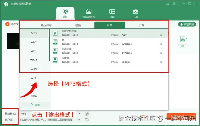 数据 蛙视频转换器不仅是视频格式转换的工具,也支持转换音频、图片文件的格式,因其具有120倍速无损转换技术,在输出转换后的文件时可以最大程度上保护原音频的音质。并且还提供了批量转换格式的功能。下面介绍该工具如何转换MP3格式音频。