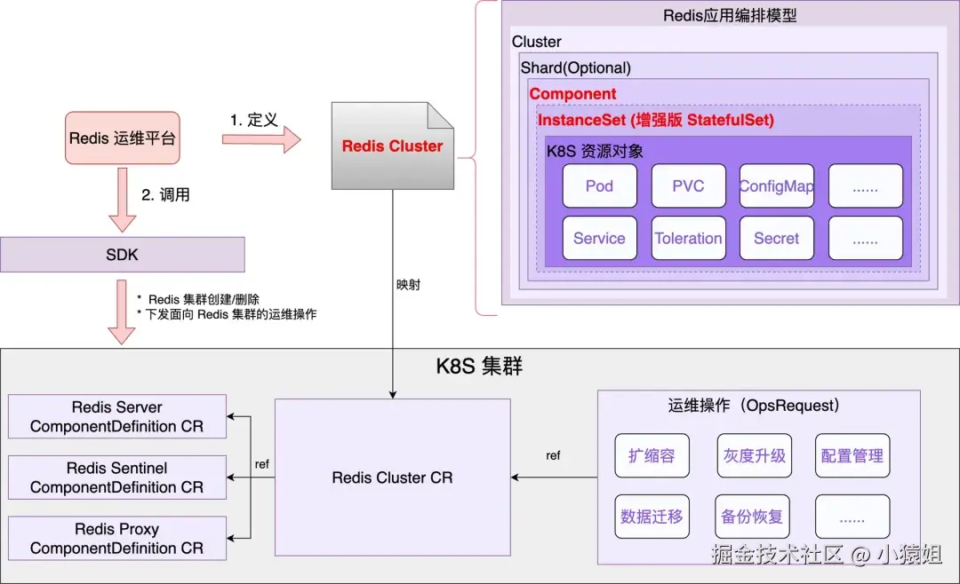 - Redis 团队重点关注如何定义 Redis Cluster 对象,并将已有的运维经验通过定义的方式进行转化;