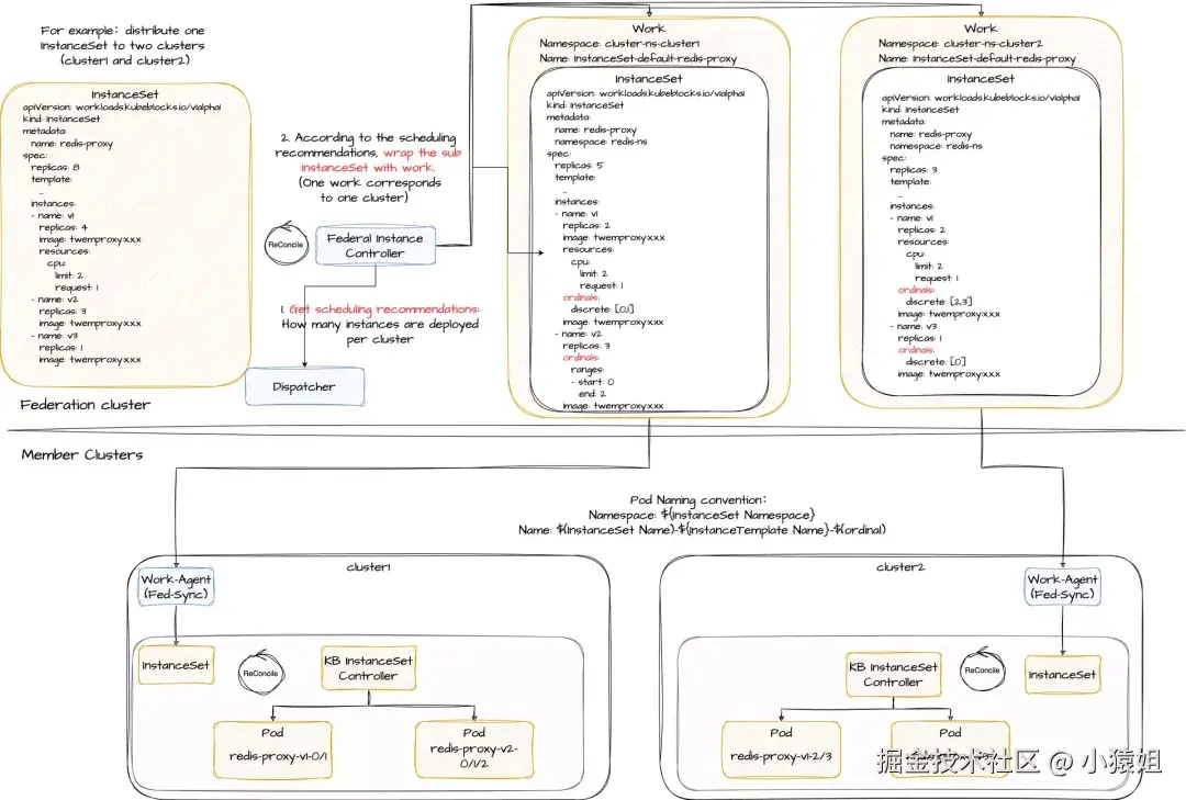 - InstanceSet 拆分与分发:负责拆分 InstanceSet,并将其分发到多个成员集群。