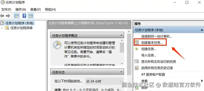 步骤2:在右侧操作栏里,点击“创建基本任务”。接着给任务取名字、选择频率,再设定具体时间。