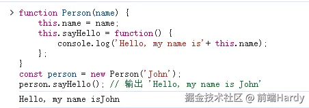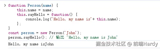 person.sayHello(); // 输出 'Hello, my name is John'