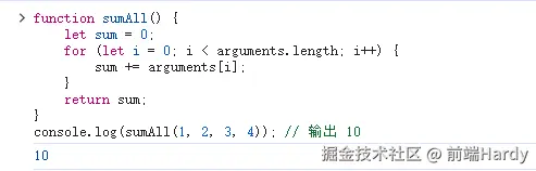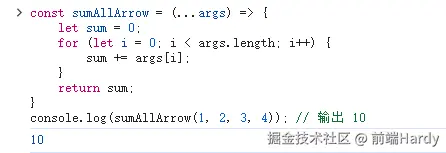 console.log(sumAllArrow(1, 2, 3, 4)); // 输出 10