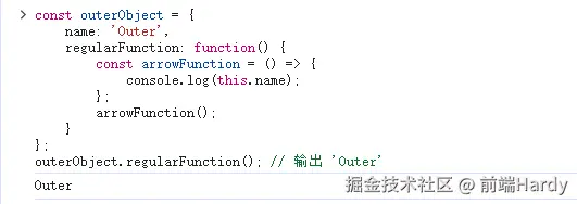 outerObject.regularFunction(); // 输出 'Outer'