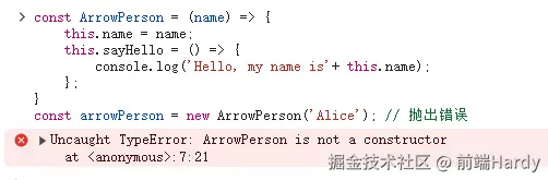 const arrowPerson = new ArrowPerson('Alice'); // 抛出错误