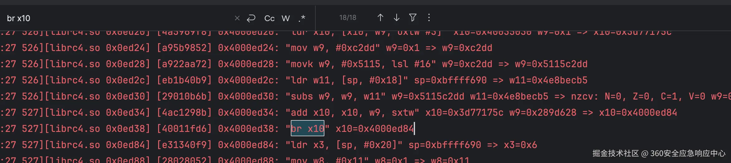 if(ins.getMnemonic().trim().toLowerCase(Locale.ROOT).equals("subs") && ins.getOpStr().trim().toLowerCase(Locale.ROOT).equals("w8, w9, w8"))