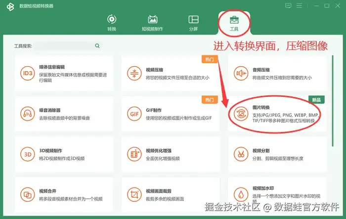 幸运的是,图像压缩技术的发展为我们提供了解决方案。这种图片大小转换技术能够在保持图片质量几乎不受影响的同时,显著降低文件的体积。下面,我将向您介绍一款优秀的图像压缩软件和使用它调整照片大小的步骤。数据 蛙视频转换器是一个优秀的图片尺寸转换器,有以下的优点: