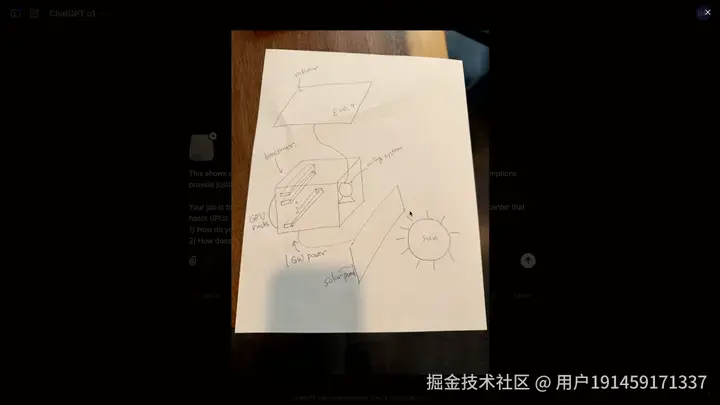 我全程观看了这场发布会,实在是太震撼了,山姆奥特曼在直播中上传了一张太空中数据中心散热板的结构草图,然后它让o1识别并计算散热板面积的下限,并顺便估算太阳和深空对散热板的影响,以及热力学第一定律的作用原理,你猜怎么着,O1在思考了十秒钟之后给出了完美的解决方案。现场的热力学博士都惊叹不已。
