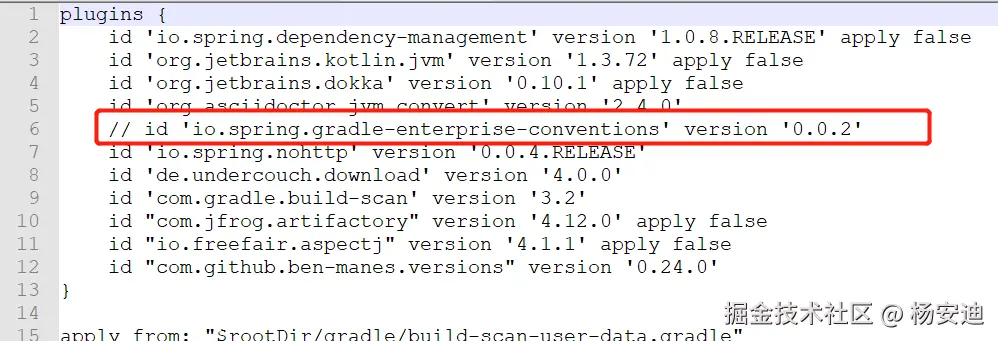 另外,注释掉这一行,因为在Gradle构建v5.2.6.RELEASE版本的Spring源码时,这个jar包可能下载不到了