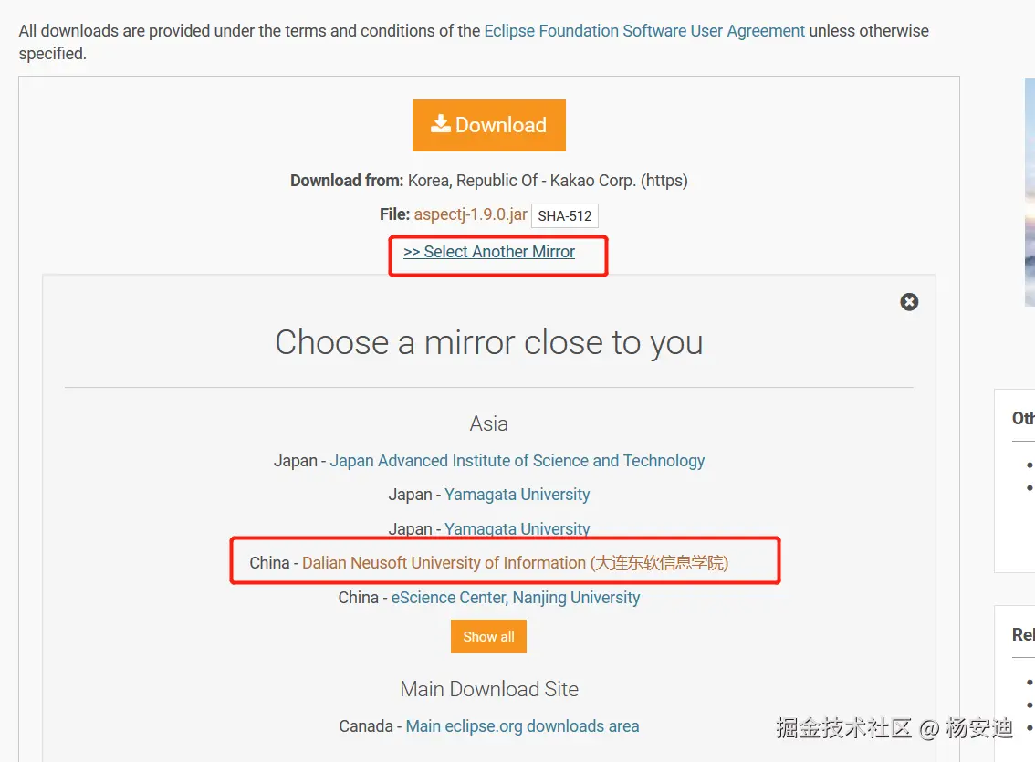 2. 下载aspectj.jar,官网地址 [https://www.eclipse.org/aspectj/downloads.php](https://www.eclipse.org/aspectj/downloads.php)