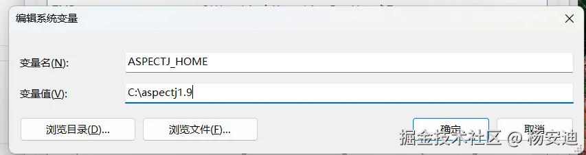 在aspectj-1.9.0.jar所在文件夹下,执行java -jar aspectj-1.9.0.jar,弹出安装界面后点两次next,然后点install,即安装成功