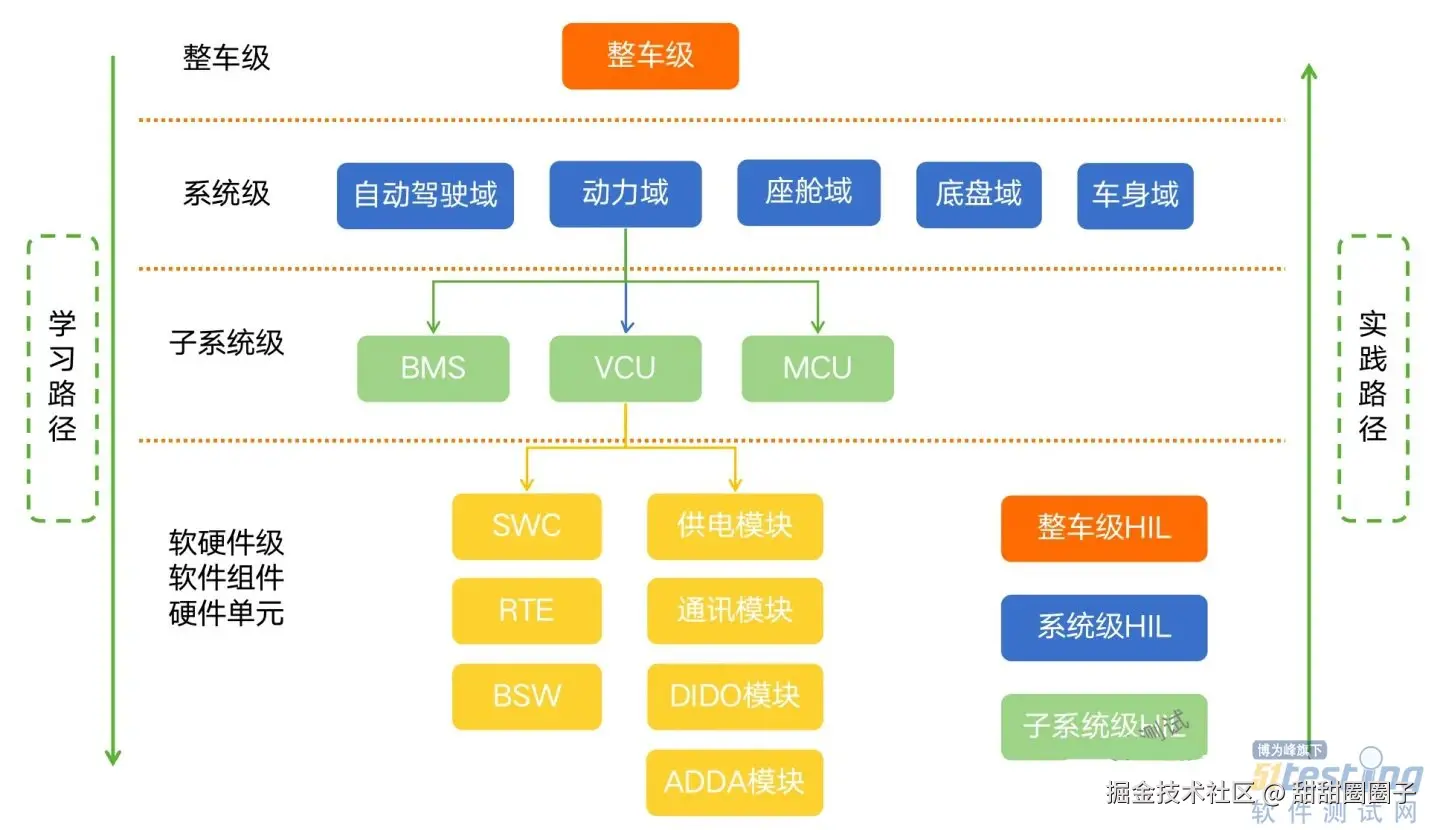 总结:学习路径是从整车相关知识到系统,到子系统;对于实践,则是从子系统的HIL到系统级HIL,到整车级HIL。目前行业内,有自主开发控制器能力的企业,HIL都是必备的,以子系统HIL为主,大概占70%,系统大概占HIL25%,整车级大概占HIL5%。