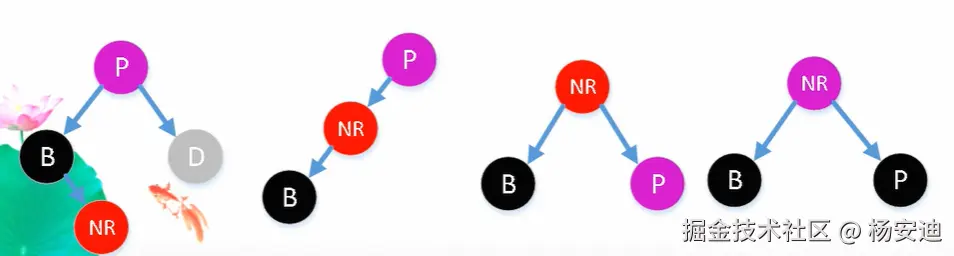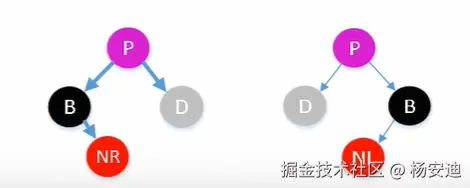 上述两种情况其实不对,因为没有考虑到红兄弟的红孙子节点,如果有红孙子,那么此时NR下连着红节点,就不符合红黑规则,因此干脆直接用下面的方式,同时适配上面的情况