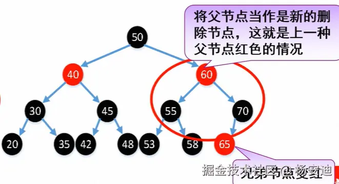 这句话为什么删掉,是因为有可能还有一个黑色兄弟节点,如下