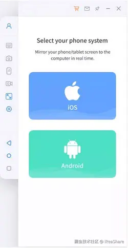 在 Windows 10 上下载并安装 Screen Mirror 后,启动它。将 iPhone 或 iPad 和 PC 连接到同一个 WiFi 网络,然后在程序界面上选择“iOS”。(想知道如何灵活地将 iPhone 连接到 PC?)