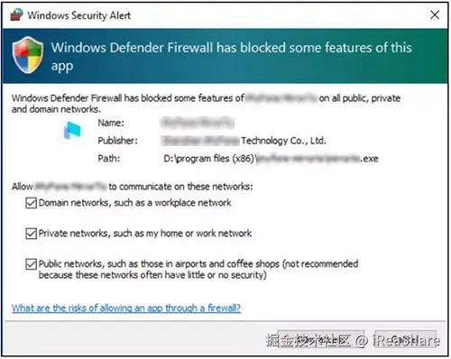 允许程序访问域网络、私有网络和公有网络。