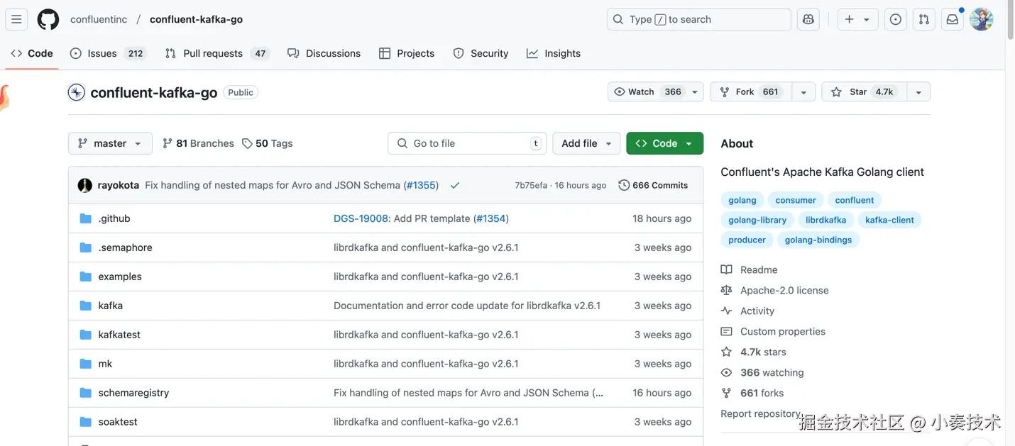 confluent-kafka-go是confluent公司开发的kafka golang sdk,由于confluent公司维护