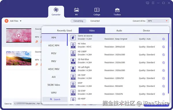 借助独特的 AI 和硬件加速技术,iReaShare Video Converter可能是迄今为止功能最全面的视频转换和编辑软件。该实用程序致力于将视频/音频转换为 1000 多种格式,包括 MP4、AVI、MOV、WMV、MP3、FLAC、WMA 等。此外,它还为您提供了一系列增强视频质量的选项,并且是新手和专家的便捷音乐电影制作工具。