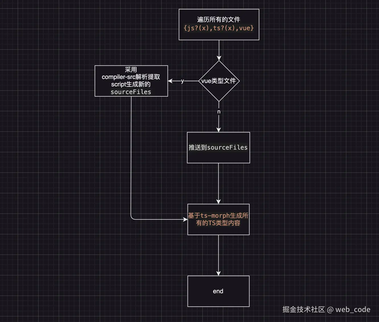 要生成TS类型文件,本质上是对TS代码进行编译,操作,然后生成单独的类型声明文件,借助ts-morph编译器来实现对TS文件类型的获取,但是对于vue文件,我们还需要借助compiler-src进行对vue文件的编译,提取出内部的script文件后借助ts-morph来进行产出类型文件