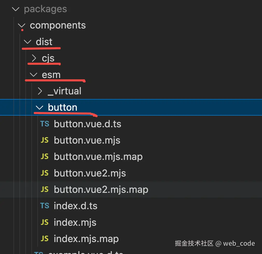 为什么组件打包构建要输出两种模块类型,ES Module是浏览器新提出的模块规范,在Node.js 13之前不支持ES Module,只支持CommonJS,所以为了向下兼容,一般的npm都提供两种模块的输出, 以下是我们基于rollup来构建的产物