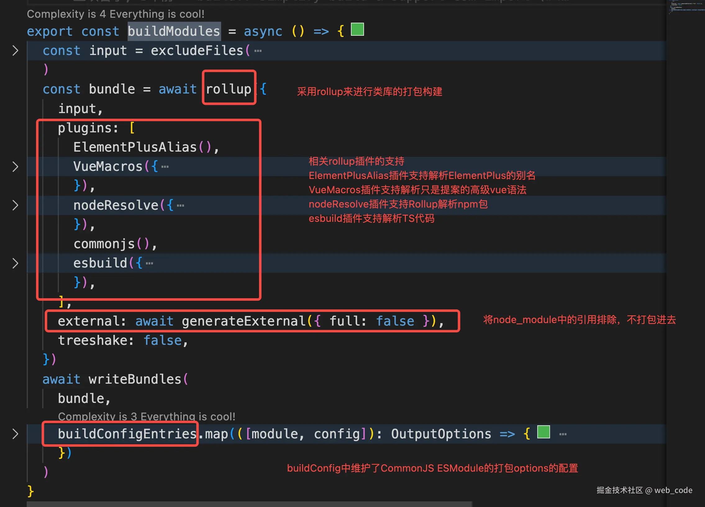 在buildModules中,主要是用rollup打包element-plus组件的相关代码,然后输出commonJS, ES Module的包,现在来分析buildModules任务中主要做了什么,是怎么实现的