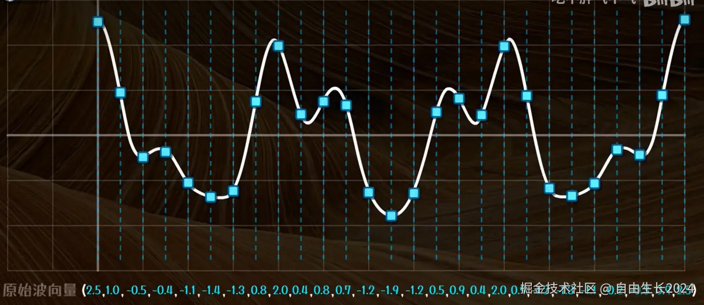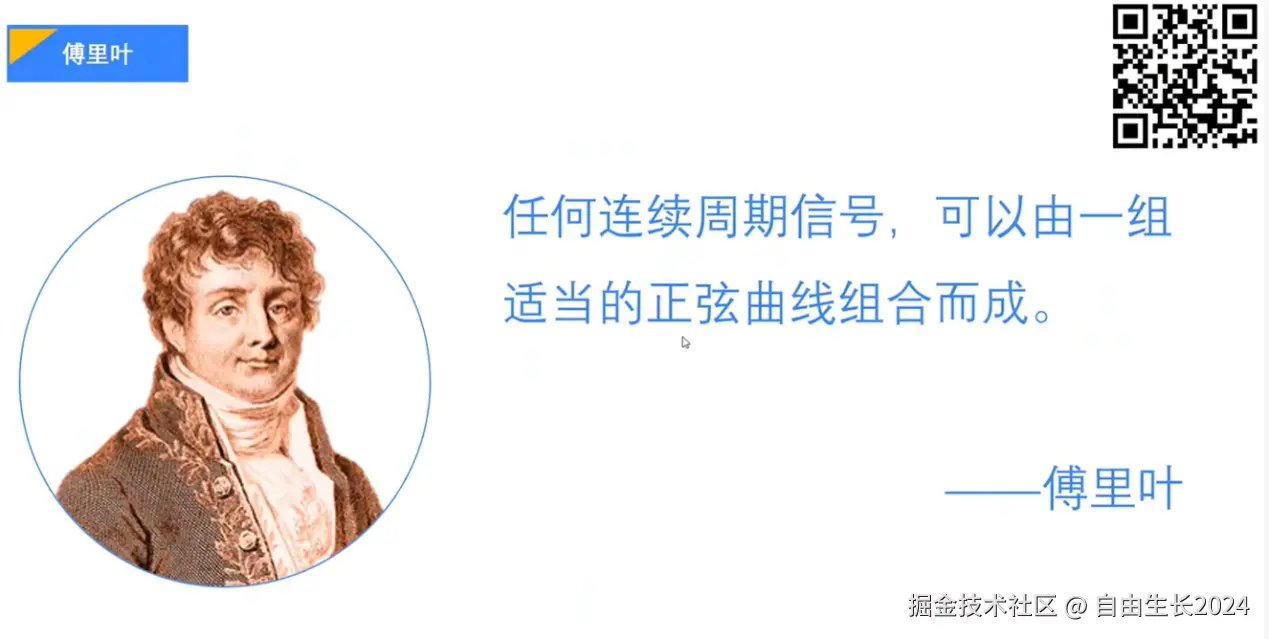 继续回到傅里叶变换,我们完成在 一个曲线从cos1x到cos100x的分解之后,也大致能描述一个波的轮廓了。加上不同分量上波的相位,就几乎可以完美复刻一个波,完成了从复杂的无规律的曲线到有规律的波的分解。