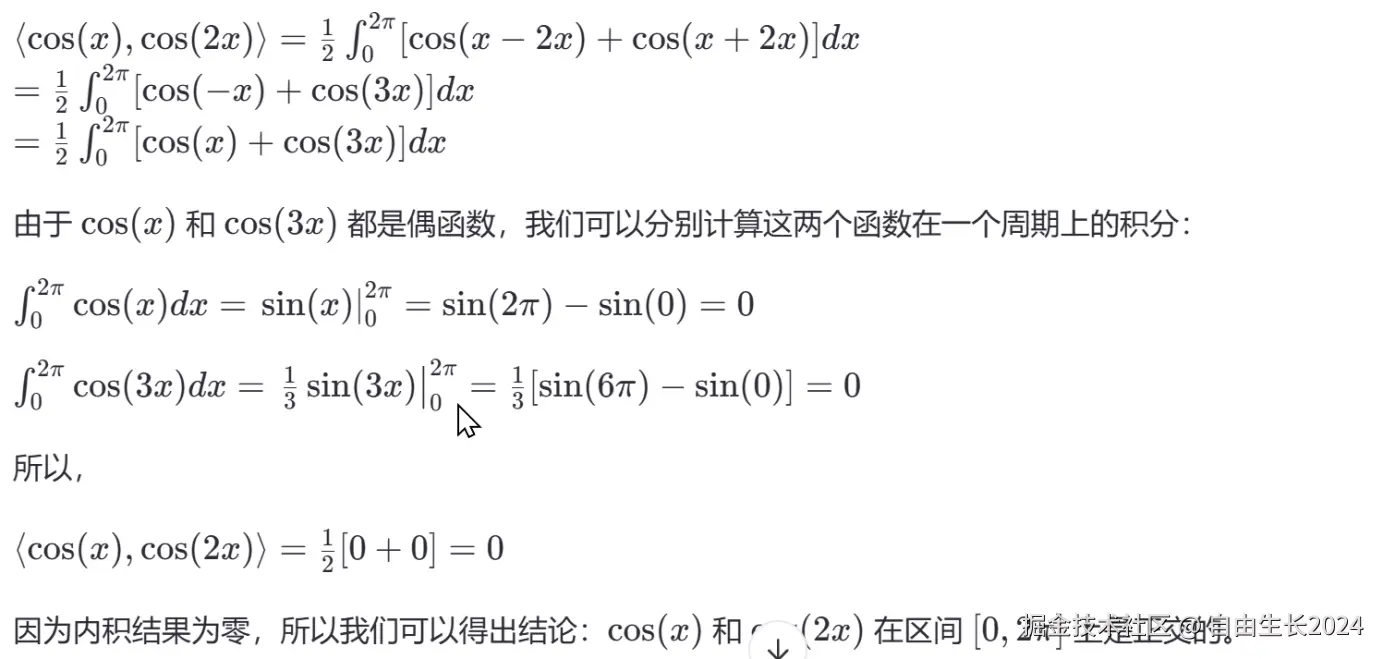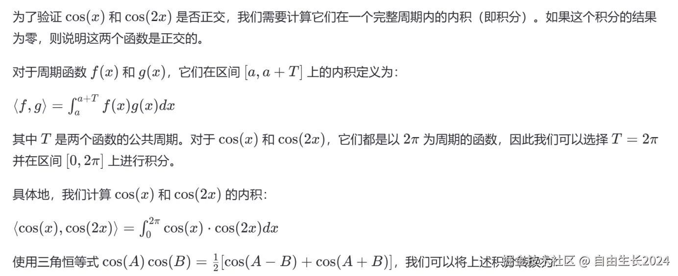 这里补充一个知识,为什么cosx,cos2x, cos3x,等等都是正交的?下面这段话通过微积分的形式展示了过程: