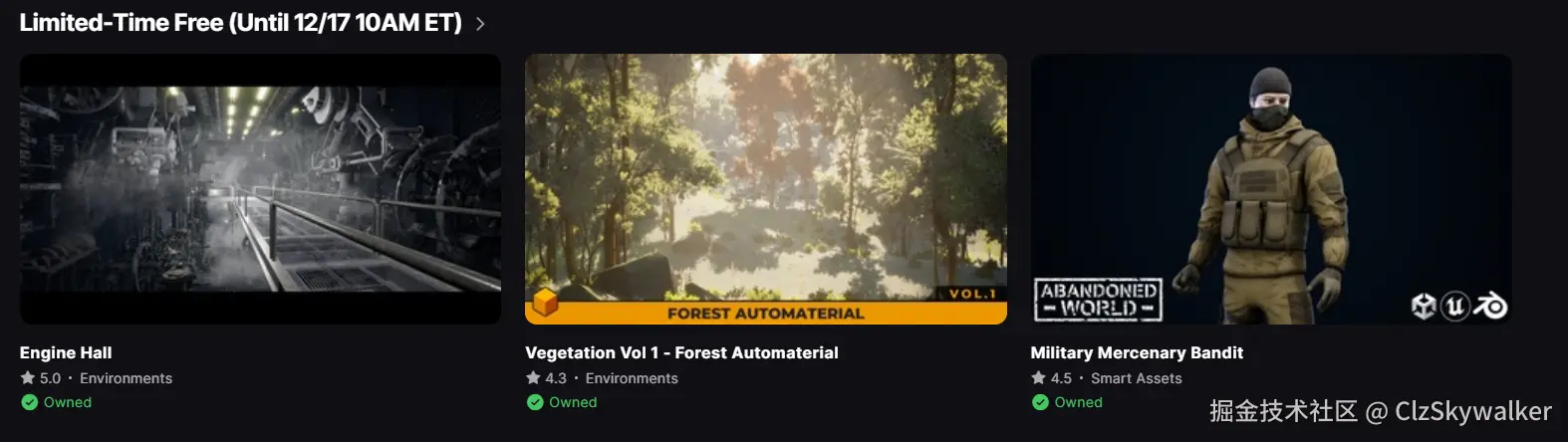 本次资源领取针对的是虚幻引擎的游戏开发者,该份资源为 epic 12 月份的第一轮资源,总共送三个模型