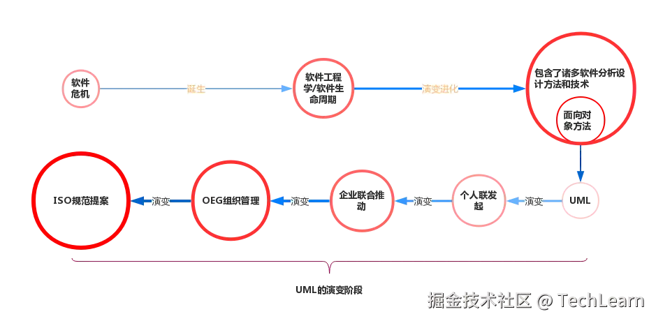 - 多家公司联合推动:演变出UML 1.0和UML 1.1版本