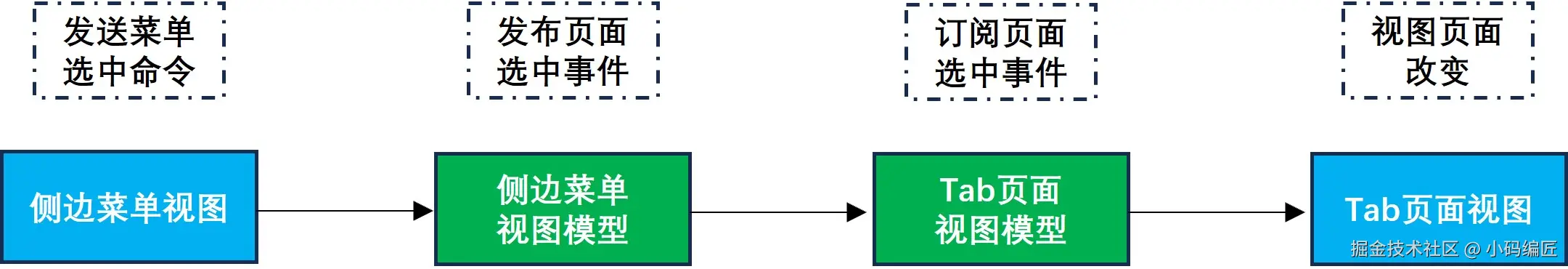 其中 PageSelectedEvent 是一个页面选中事件,用于 ViewModel 之间传递消息,起到解耦作用。