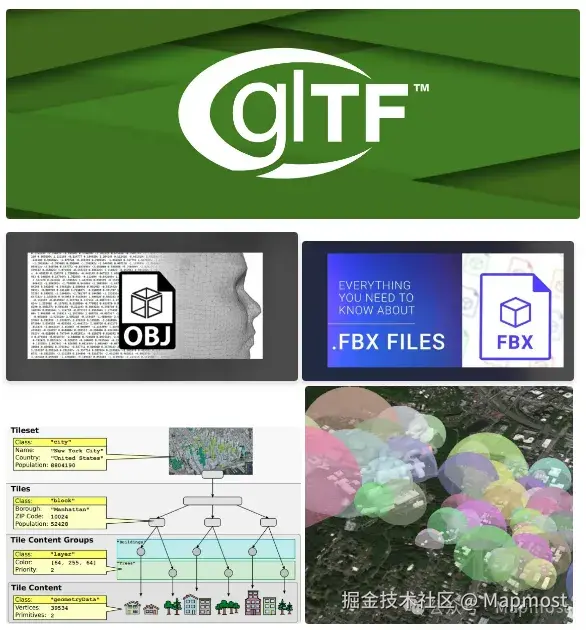 三维模型是一个包含几何数据、材质、纹理和动画信息的三维对象。而三维模型的格式存在多种如: GLFT/GLB 、FBX、OBJ 、3d-tiles 、I3S等等。对于各种模型的优缺点比较以及实际应用场景,小编先挖个坑,下期填上。