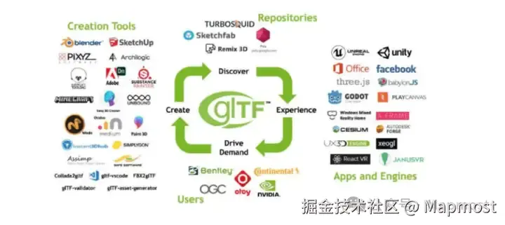 · 广泛的行业支持:许多知名的3D引擎和应用程序都支持glTF格式。