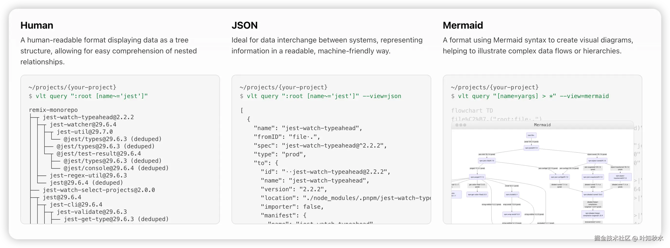 - Visual magic:以各种格式导出依赖关系图,包括 Mermaid。