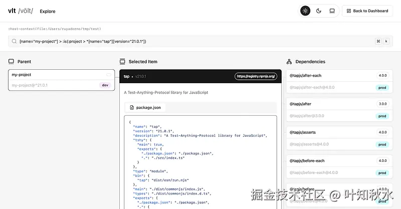 vlt 提供功能强大的命令行工具,用于依赖性分析: