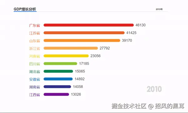 - 先画数据项,我这里列表画了10个数据项,分别用不同颜色设置,如下排列: