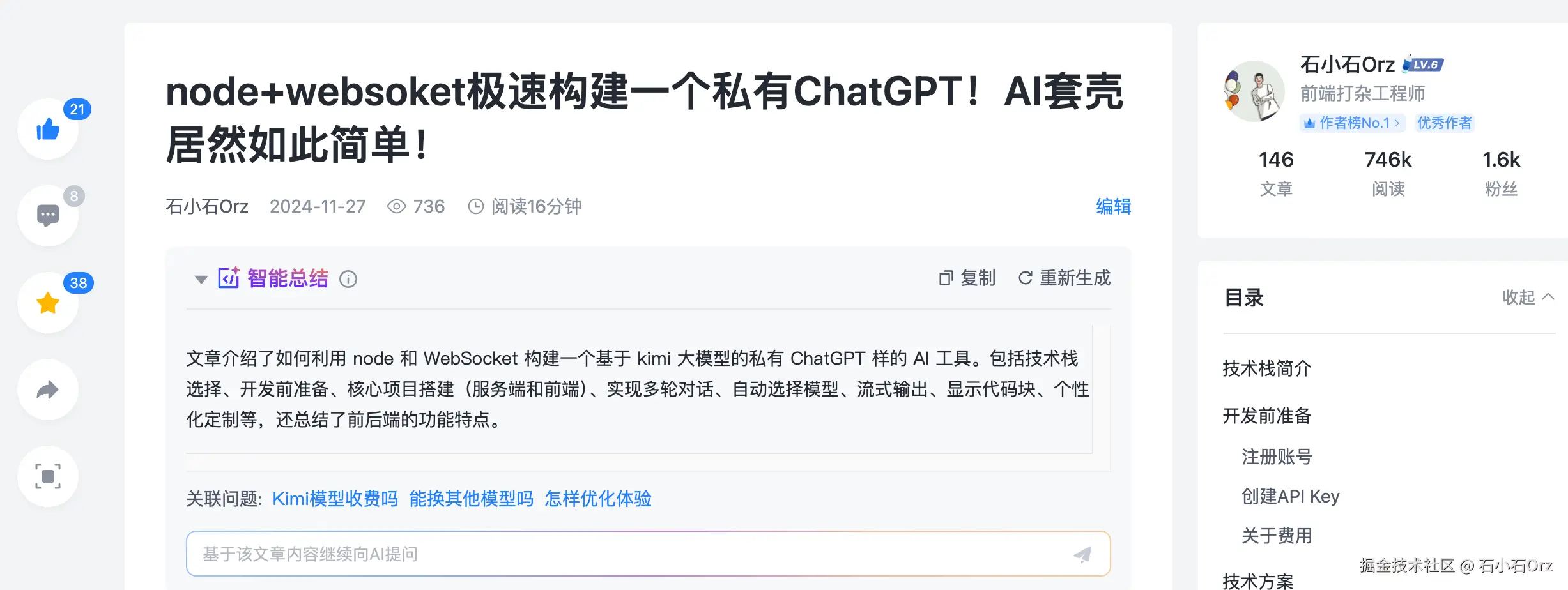 上面的代码是kimi的官方配置示例,包括client.chat.completions.create的调用及参数,如果你想具体了解,可以参考我其他文章中的教程: