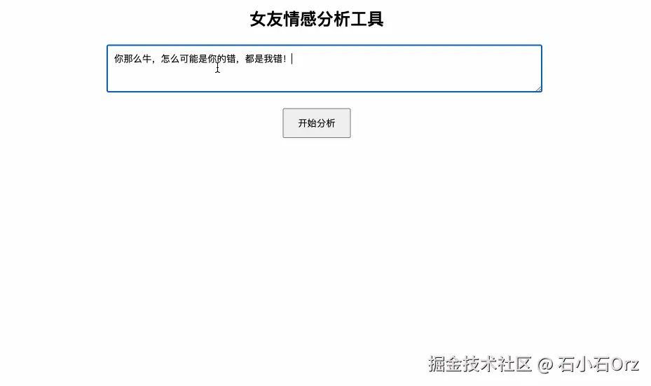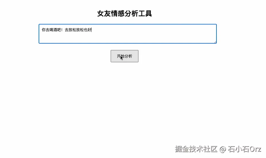 这篇文章,我将完整展示如何实现这个情感分析工具,包括从前端 Vue 3 技术栈、后端 Koa 服务到 AI接口调用,一步步实现整个流程。最终的效果大致如下: