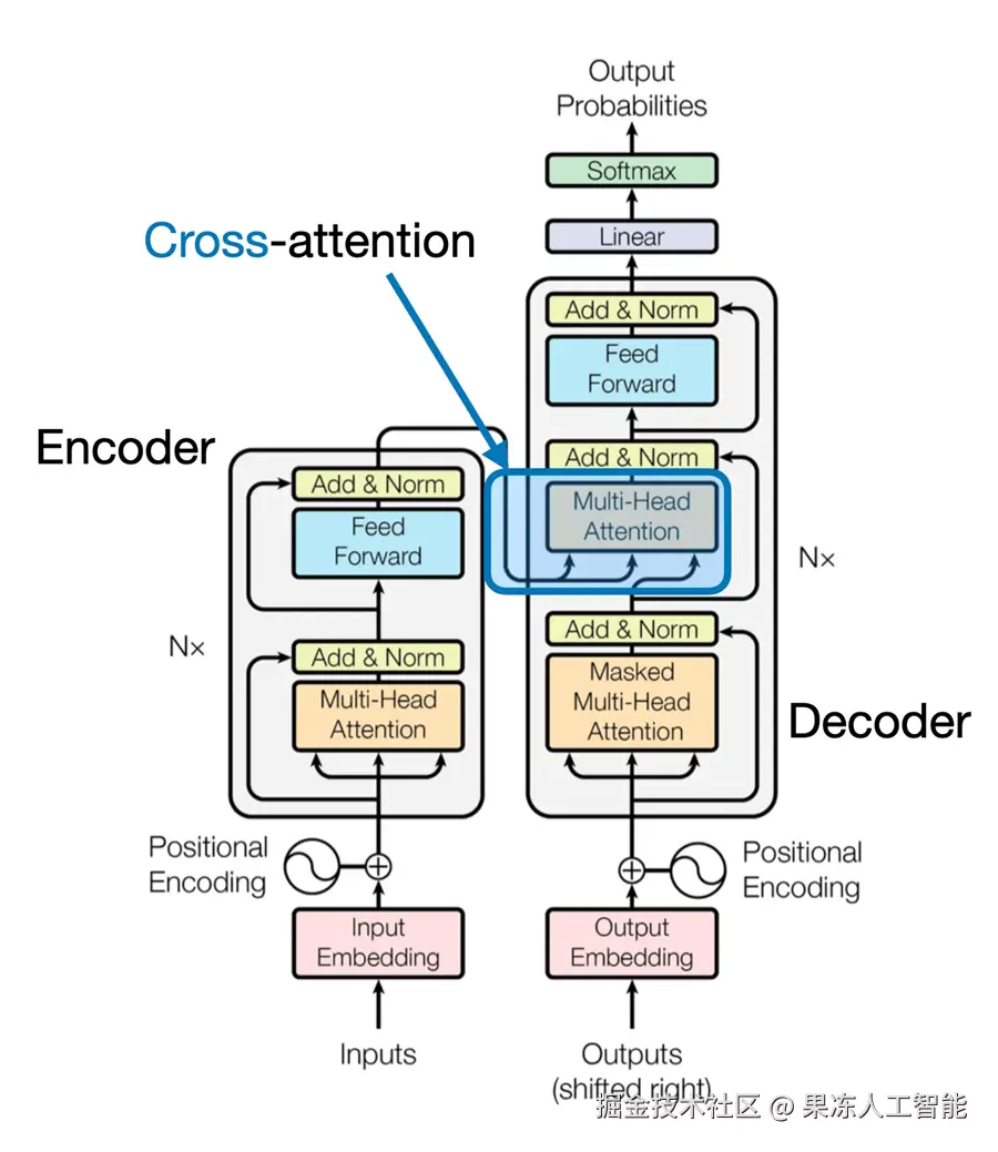 图示:最初的 Transformer 架构里使用的跨注意力机制。(图片来自“Attention Is All You Need”论文:arxiv.org/abs/1706.03…