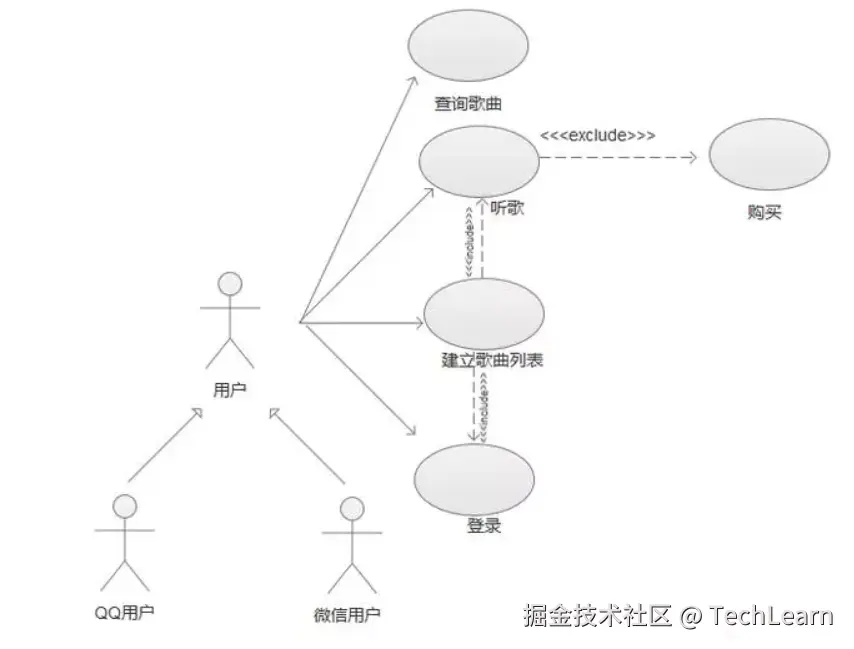 注意:扩展与包含的箭头方向是相反的,这表明扩展取决于扩展用例而非基用例,扩展用例决定扩展的执行时机,基用例对此一无所知。