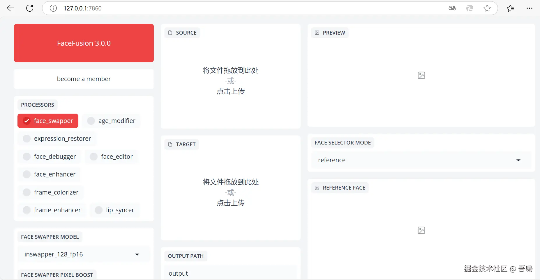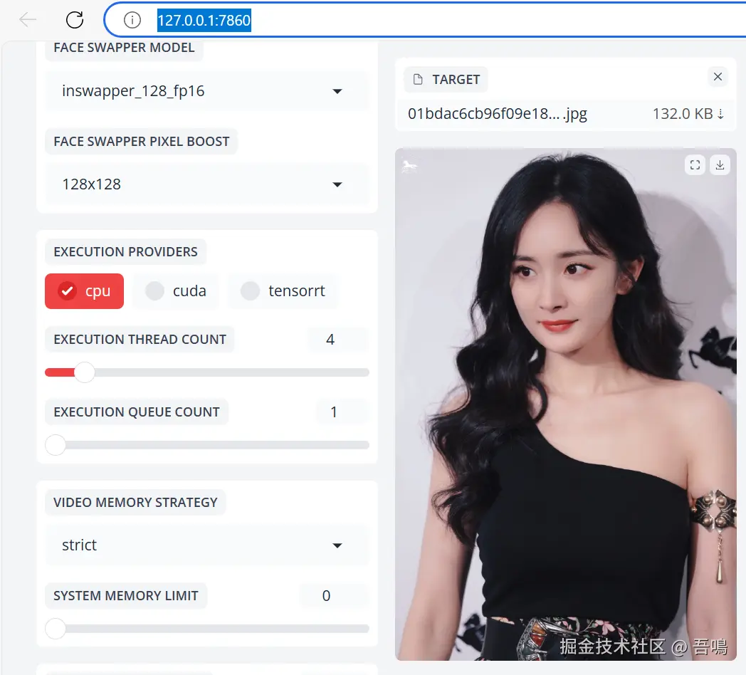 软件的使用也是非常的简单,在source选择你需要的换的脸的图片,target选择需要被换脸的图片或者视频,然后右侧的预览处就可以自行看到效果图了。