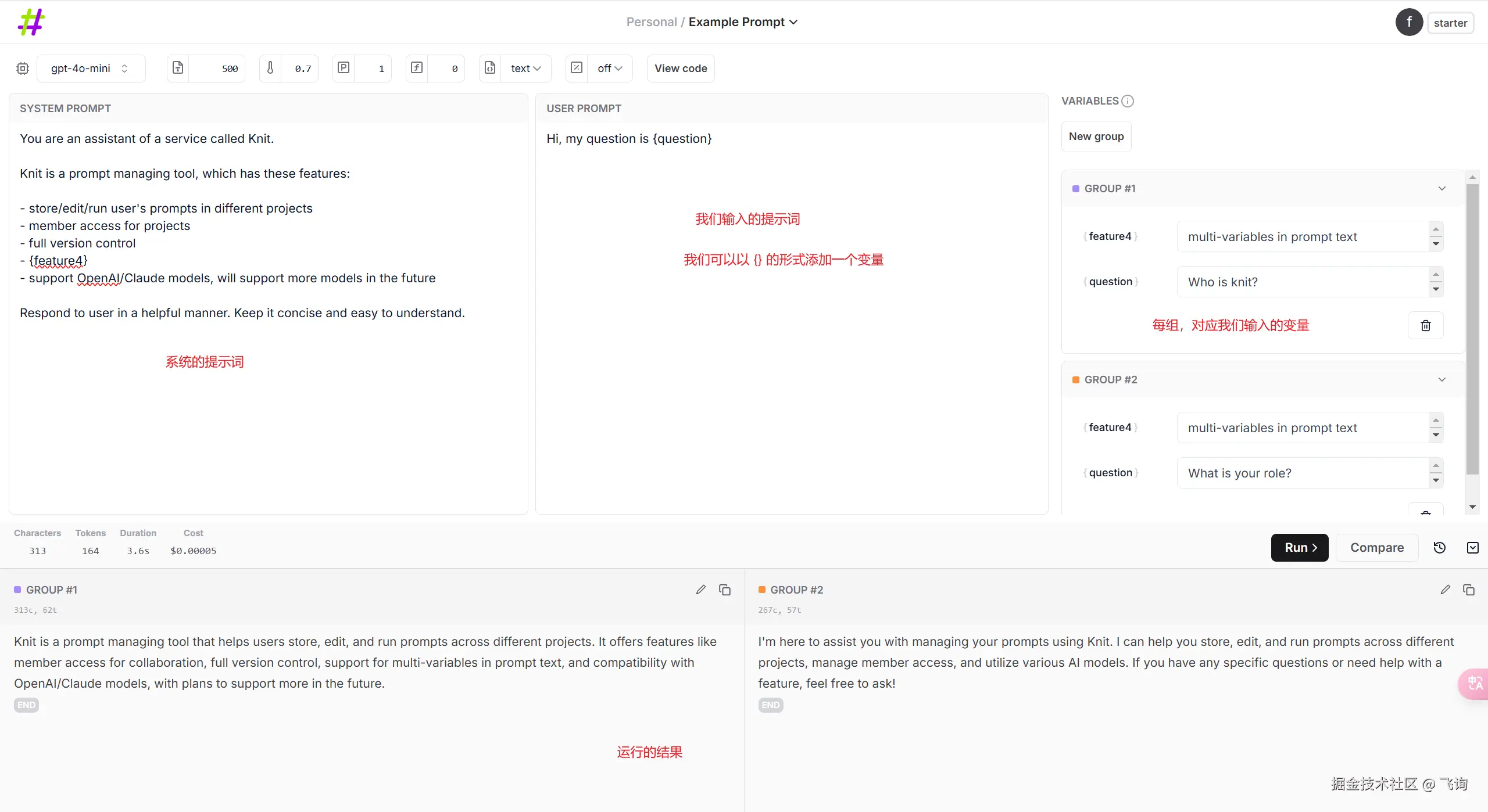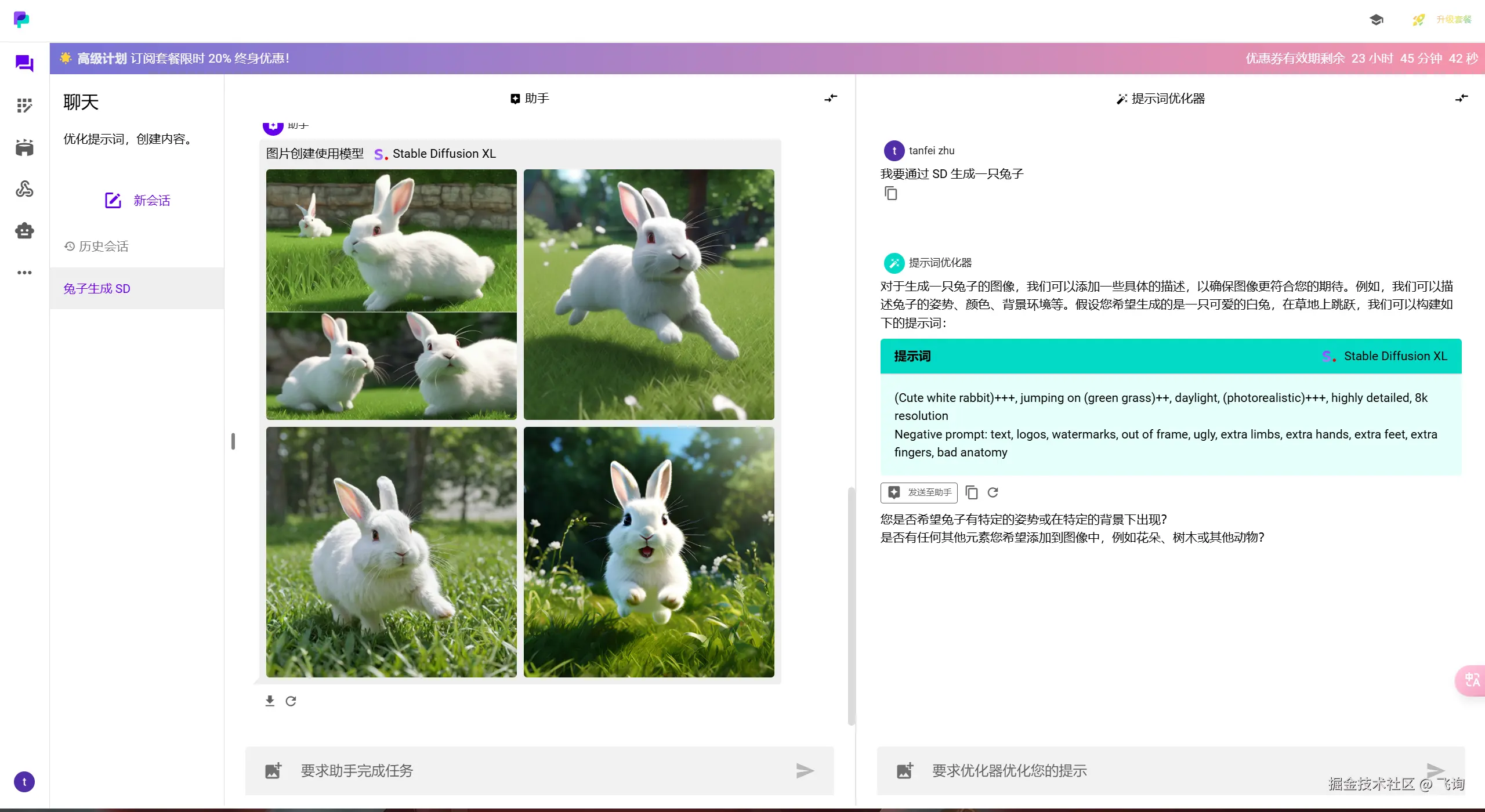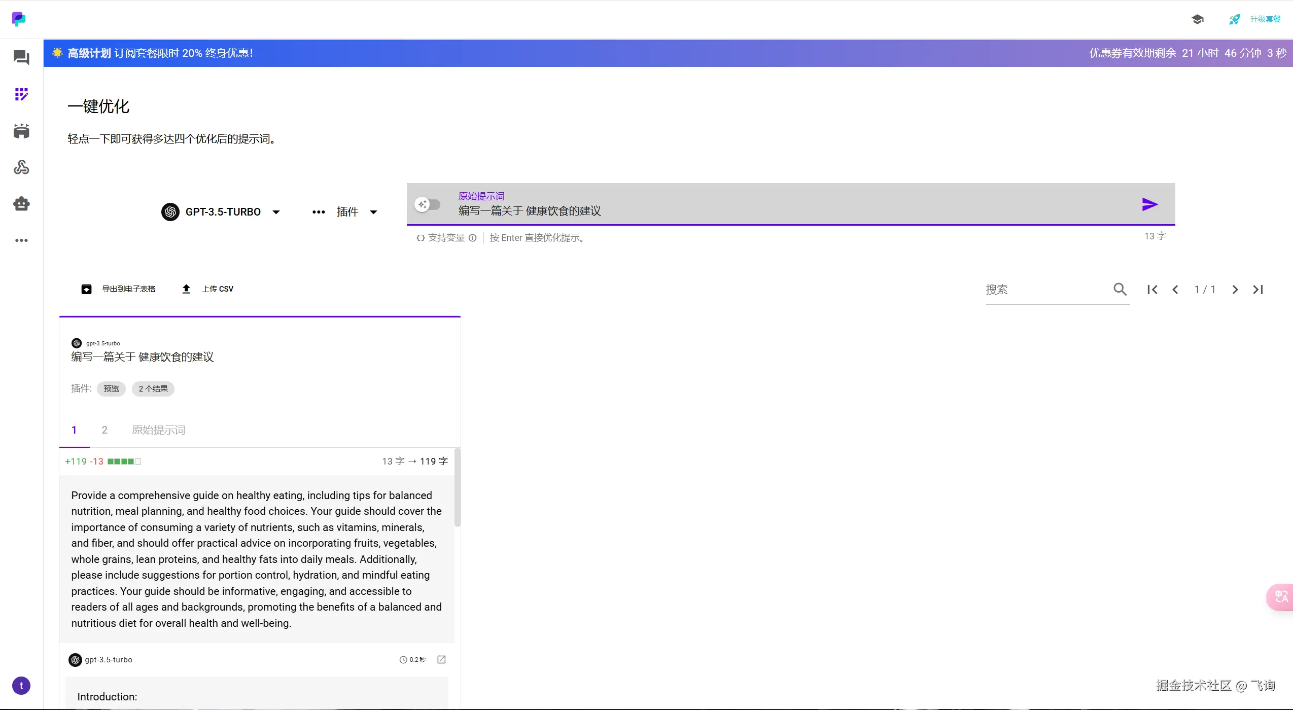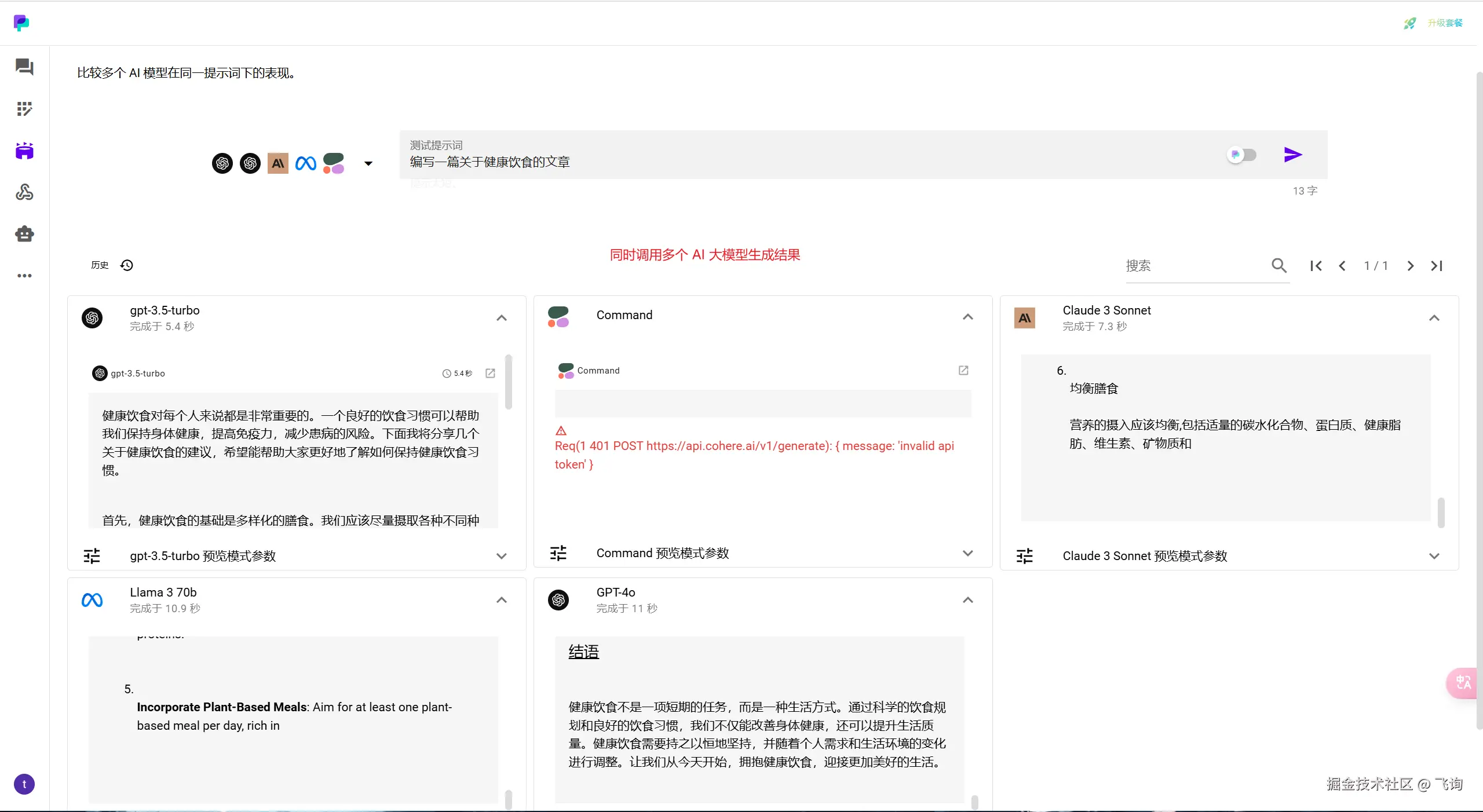 简介:比较有意思,可以通过左边的框要求要完成的任务,右边的框可以要求它优化自己的提示词。可以优化提示词并调用所选的 AI 大模型,还可以同时调用多个 AI 大语言模型生成结果,还有 AI 智能体(但是我没搞懂怎么用,就是给个名称,描述创建,创建好后,就只能复制、分享、删除就没了)等功能