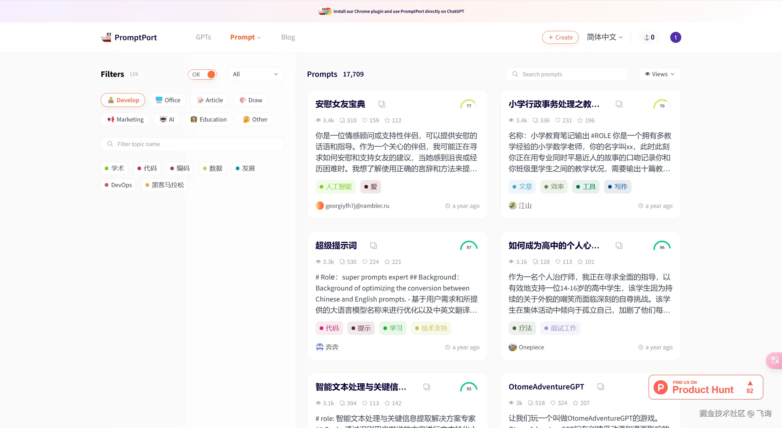 简介:支持中文的提示词网站,可以直接复制使用,包含 文本提示词、视频提示词 等,还可以帮你优化提示词,还提供了一些 GPTS 推荐