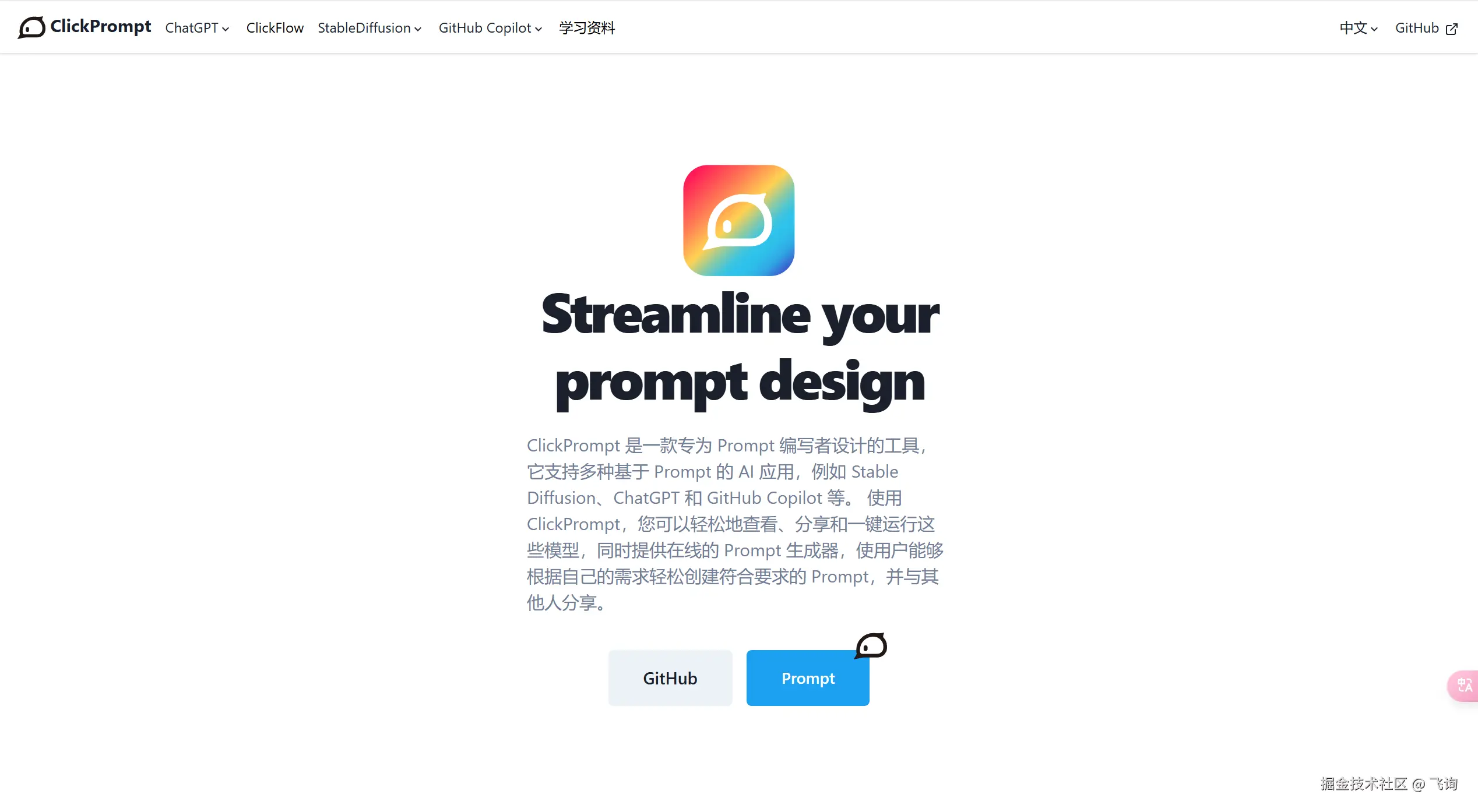 简介:ClickPrompt 是一款专为 Prompt 编写者设计的工具,它支持多种基于 Prompt 的 AI 应用,例如 Stable Diffusion、ChatGPT 和 GitHub Copilot 等。 使用 ClickPrompt,您可以轻松地查看、分享和一键运行这些模型,同时提供在线的 Prompt 生成器,使用户能够根据自己的需求轻松创建符合要求的 Prompt,并与其他人分享。