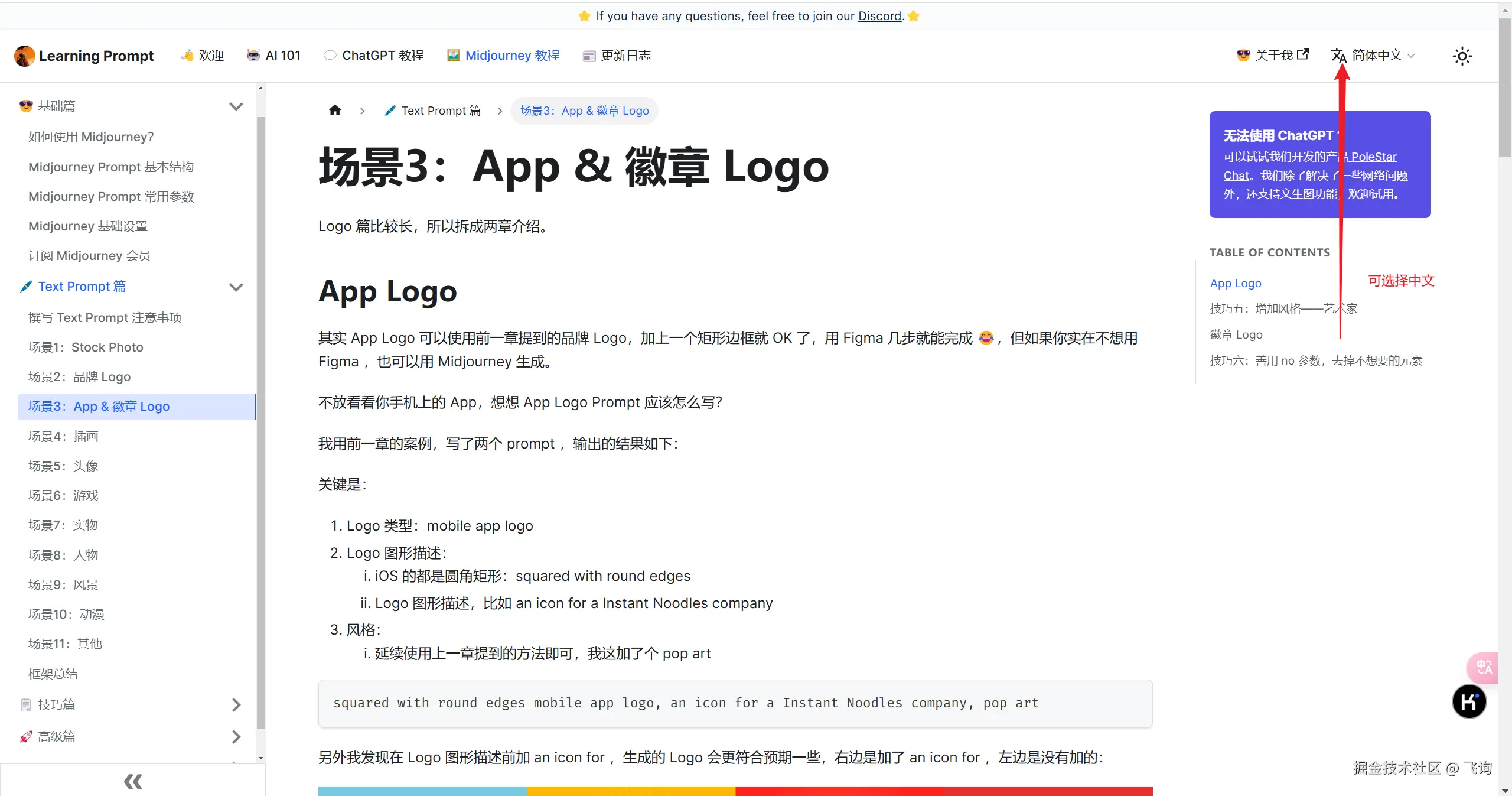 简介:这是一个学习 提示词 的网站,有 ChatGPT,Midjourney 的提示词教程、技巧等,他在右上角有中文语言的选择,教程非常详尽