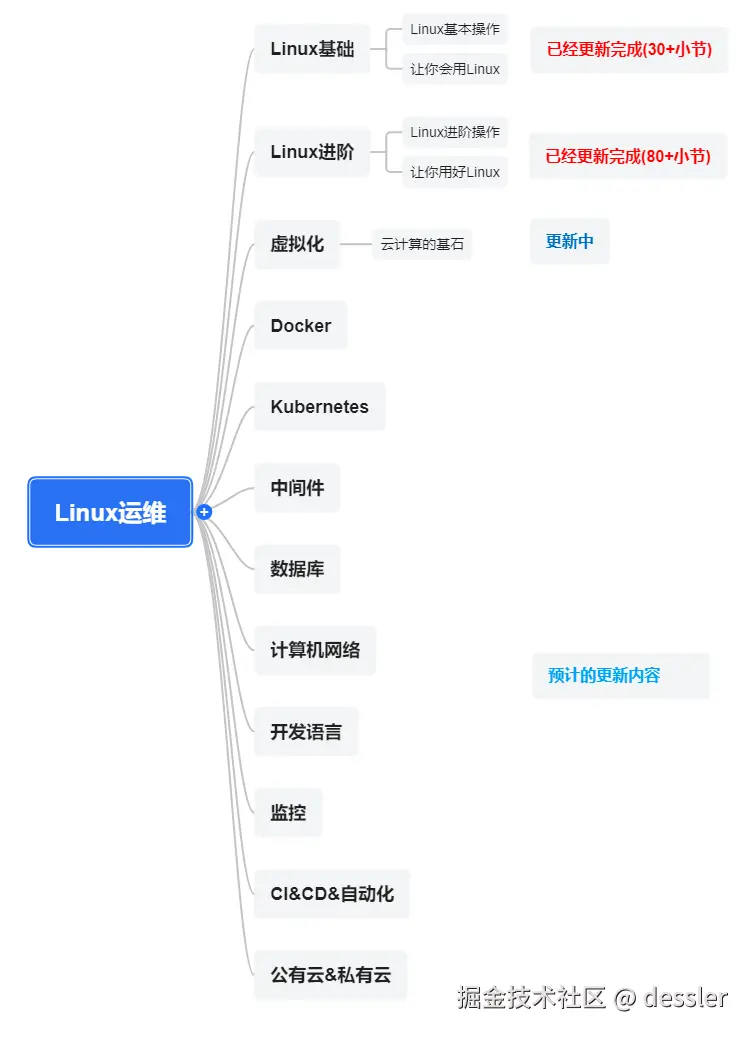 作者介绍:简历上没有一个精通的运维工程师。希望大家多多关注作者,下面的思维导图也是预计更新的内容和当前进度(不定时更新)。
