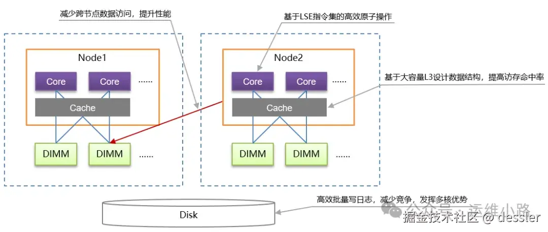 这种设计的主要目的是解决随着处理器数量增加而带来的扩展性问题。传统的对称多处理系统(SMP)中,所有处理器共享同一块物理内存,当处理器数量增加时,内存带宽成为瓶颈,影响系统的性能。