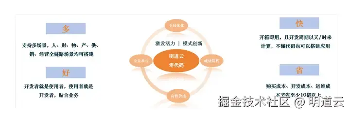 - 选型过程:在选择零代码和低代码平台时,对比了金蝶苍穹云和明道云低代码平台,发现明道云可解决部分复杂应用。在选型中还参考广汽经验,从平台能力(架构、流程、集成、创新)、供应商实力(长期支持、产品迭代能力、公司规模、生态伙伴经验)、场景(通过大量 POC 对比)、安全能力等方面评估,最终选择明道云。