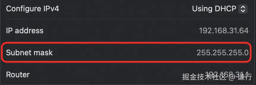 子网掩码(Subnet Mask)是一个 32 位的数字,它的作用是将 IP 地址划分成网络地址和主机地址两部分,在子网掩码中