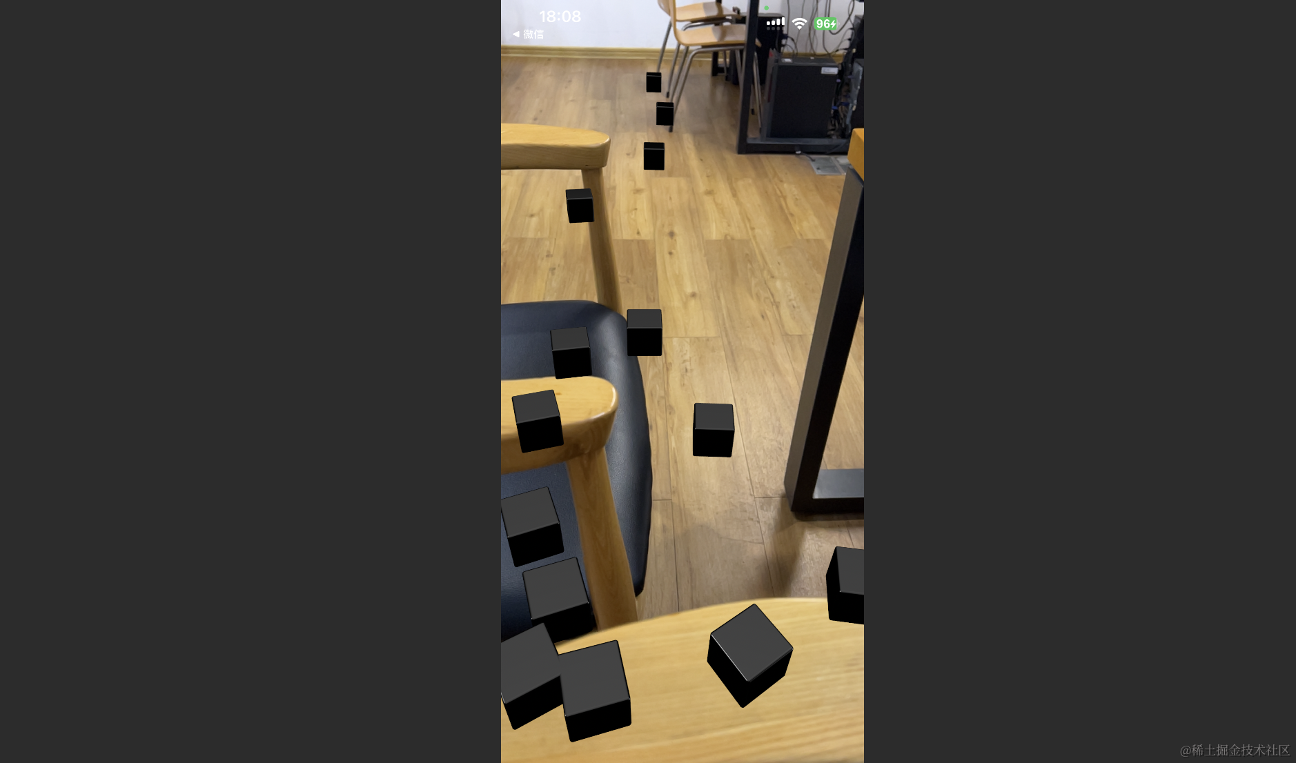 刚入门ARKit的朋友可能刚开始有点不知所措,不知道怎么入门,甚至连门都找不到,这里就使用一个最小的Demo来做一个案例展示,我也是慢慢研究一天搞出来的。当检测到平面的时候,会在这个平面上显示一个黑色的立方体,并且当你点击屏幕的时候,就会在对应的位置增加一个立方体。