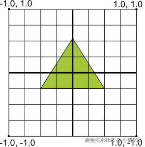 在绘制图形前我们要了解OpenGL ES的坐标系,我们知道Android的坐标系左上角为原点[0,0],而OpenGL ES的坐标系如下图: