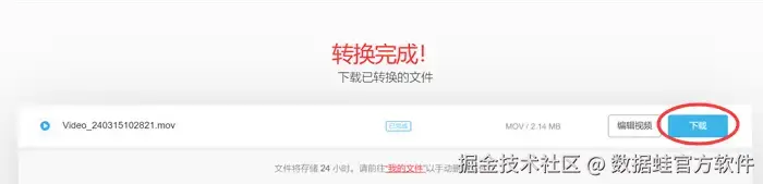 步骤3: 转换完成后,在24小时内下载文件。